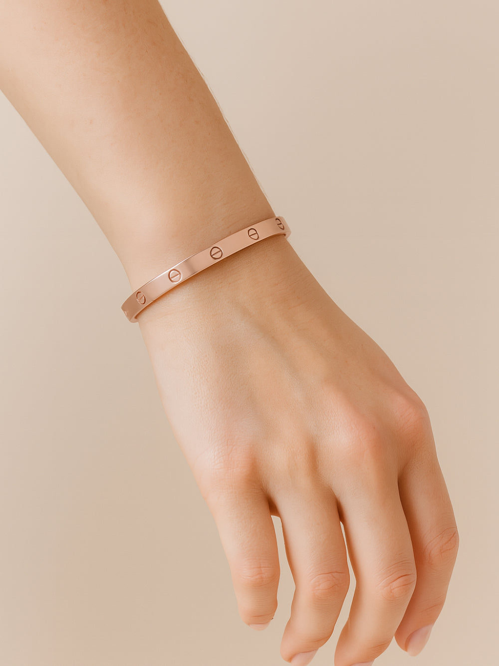 The Cleo Bracelet pairs sleek curves with bold screw detailing, creating a powerful yet effortless everyday piece.