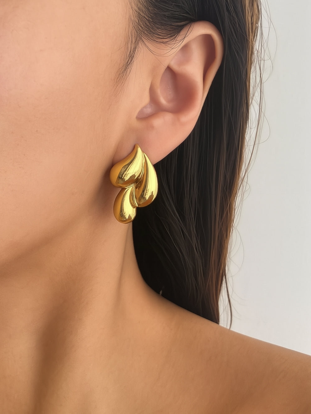 The Drop Earrings flow in threes, combining gentle curves and clean shine for a look that’s timeless and modern.