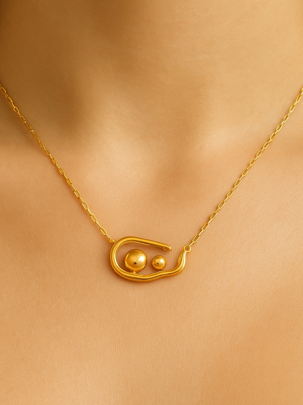 The Duora Necklace features two perfectly polished spheres in a balanced design. Minimal, modern, and effortlessly chic.