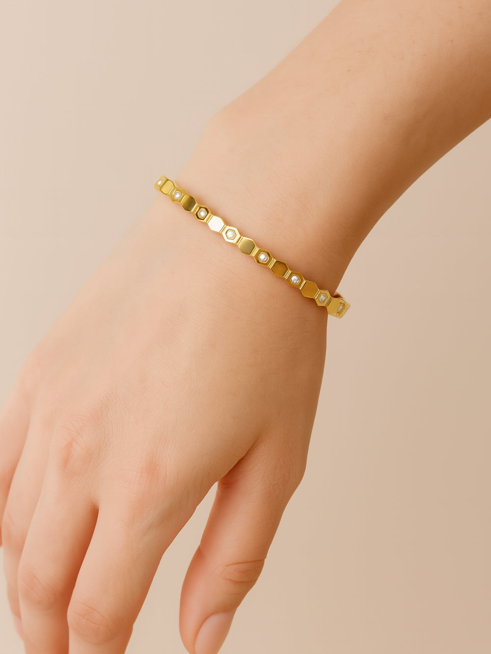 Bold geometry the HEXA BRACELET features clean hexagonal shapes in a sleek, modern silhouette made for everyday edge.
