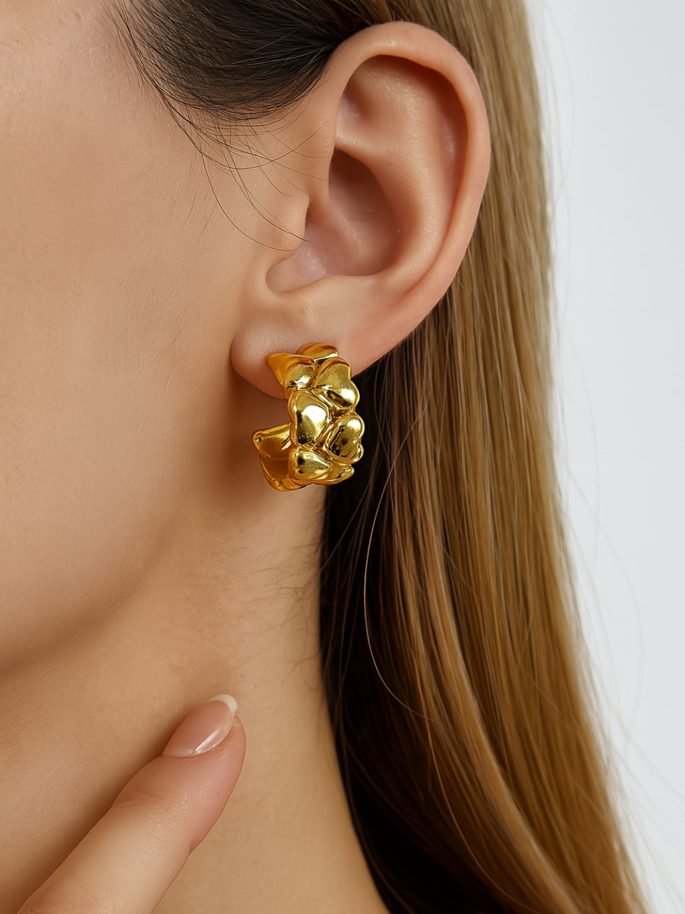 The Melody Huggies feature a heart shaped silhouette with a soft, polished finish. Simple, sweet, and easy to wear.