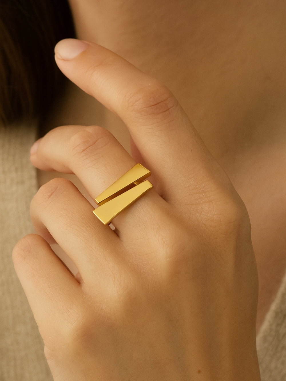 The Duora Ring A modern harmony of dual bars crafted in radiant gold. Bold, sleek, and designed to stand out with effortless elegance.