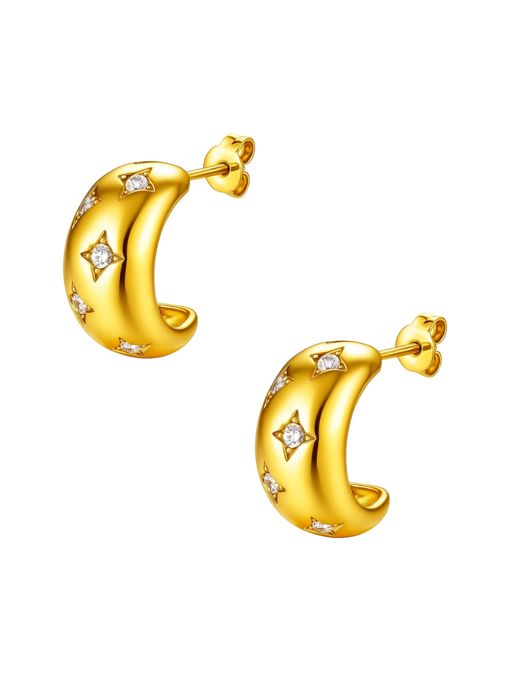 The Stella Earrings blend soft curves and gentle shine, crafted for those who love effortless elegance with a celestial touch.