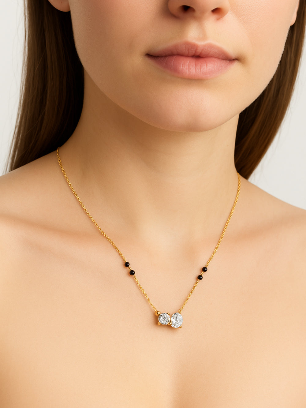 Toi et Moi Mangalsutra celebrates two souls united as one. Twin stones meet on a golden chain of love and eternity.
